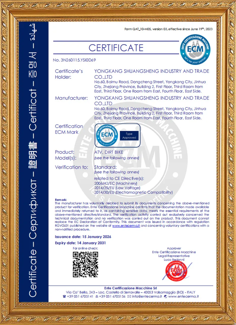 我们高度重视零部件品质、装配工艺、包装规范、装柜管控及新车型研发工作。公司已建立稳定的零部件供应商体系,并拥有训练有素、结构稳定的员工团队。每款产品出厂前均经资深质检人员严格检验;同时配备专用叉车及专业装柜团队,有效降低运输过程中的货损风险。我们持续优化每一道生产工序,致力于提升产品品质与交付体验。